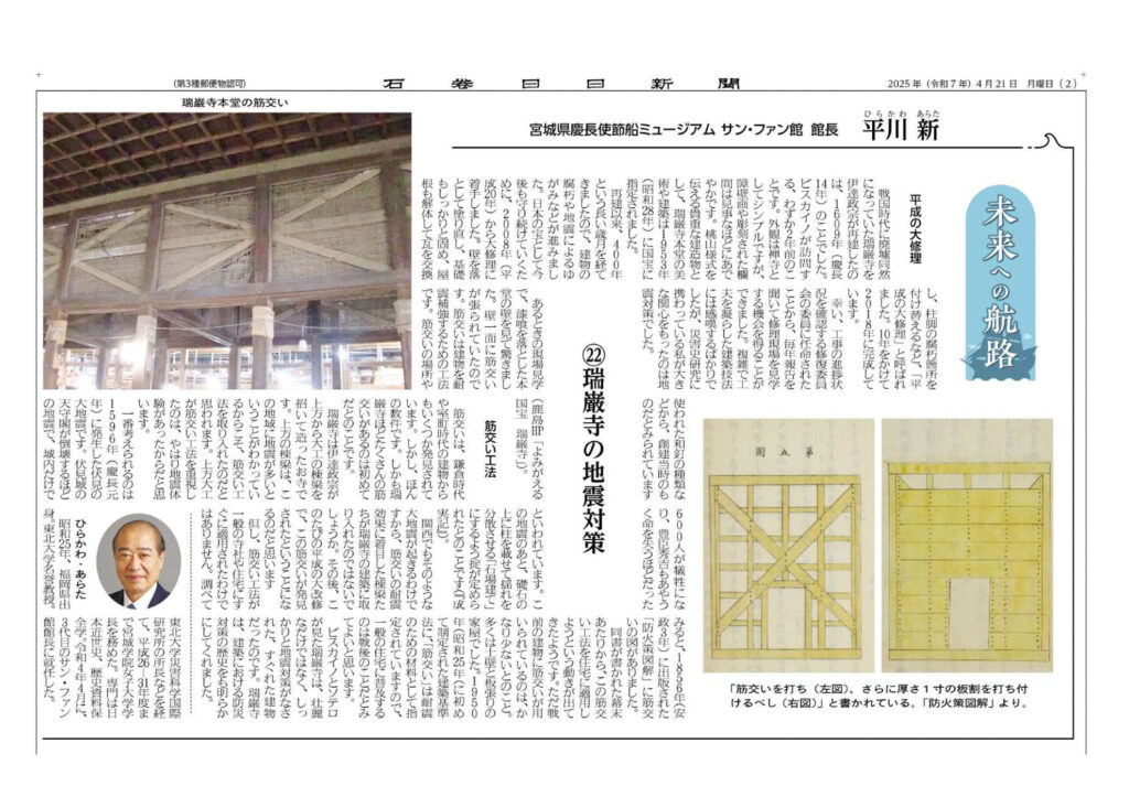 第22回 2025年4月21日掲載「瑞巌寺の地震対策」