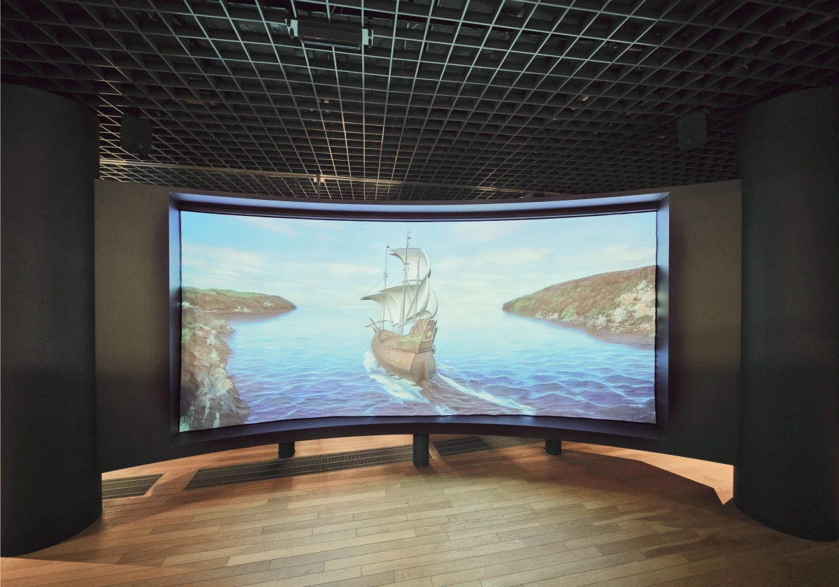 精巧に創られた「凹凸のあるスクリーン」と、大迫力の映像・音が重なり合って再現された出帆シーン。