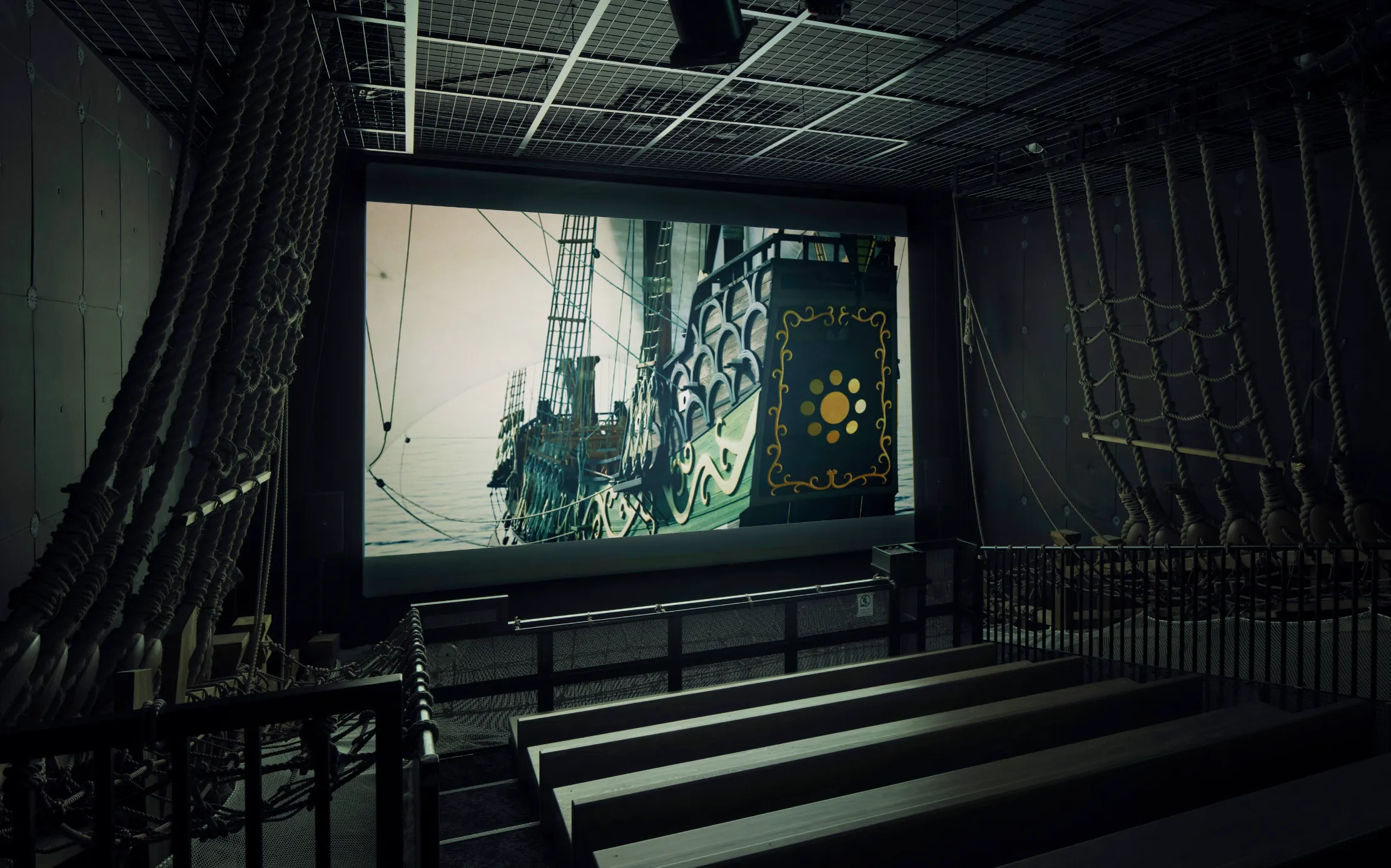 まるで、当時の木造船に乗船しているかのような、没入感あふれるシアター空間。