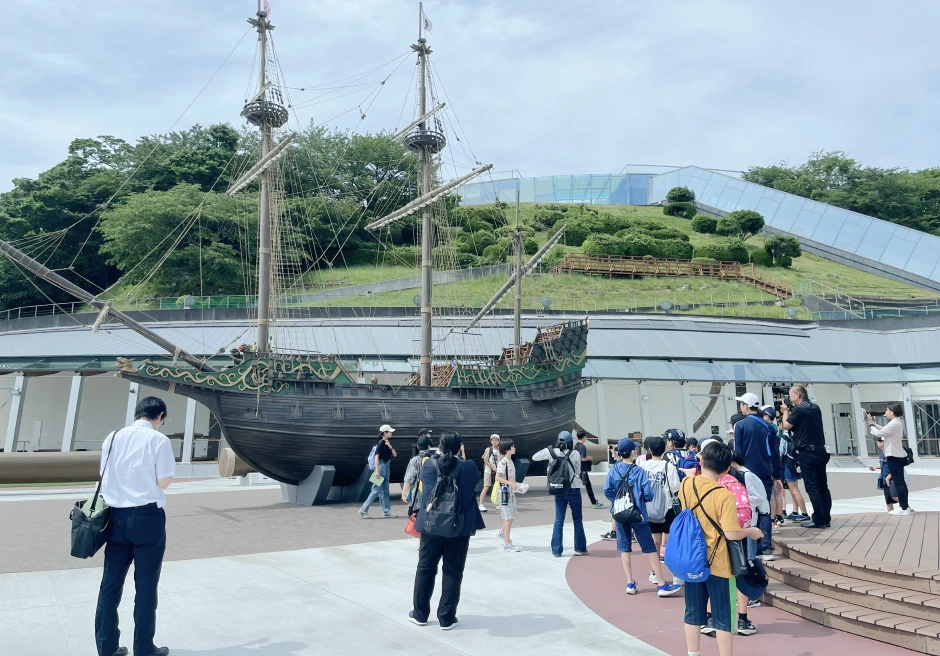 また、屋外展示の復元船「サン・ファン・バウティスタ」号(1/4 スケール)は船についてじっくり観察いただけるポイント。