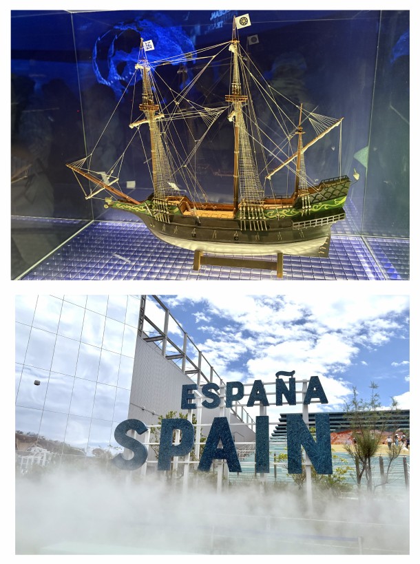 2025(令和7)年4月13日~10月13日にかけて開催されている「大阪・関西万博」(大阪 夢洲)のスペインパビリオンにおいて、宮城県慶長使節船ミュージアム所蔵の「サン・ファン・バウティスタ」号帆船模型が展示されています。お立ち寄りの機会があればぜひご覧ください。